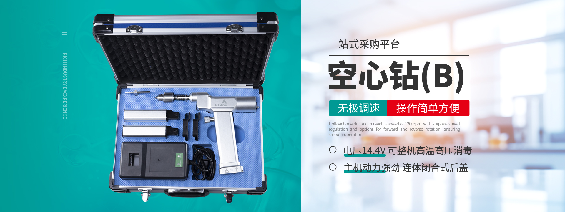 鹽城瑞奧科技有限公司主要產品:醫用電動鋸鉆系列(可高溫高壓消毒和熏蒸消毒兩種):包含骨鉆、擺鋸、胸骨鋸、空心骨鉆、開顱鉆、顱骨銑等等,適用于骨科、腦外科、神經外科、胸外科、手足及顯微外科、脊柱外科、整形外科等各種手術的要求。電動石膏鋸可切割高分子繃帶、石膏等?;A器械系列:咬骨鉗,髓核鉗,椎板咬骨鉗,持骨鉗,四肢骨折手術器械包等。